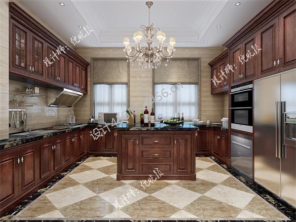 155平米美式风格四居室厨房橱柜装修效果图