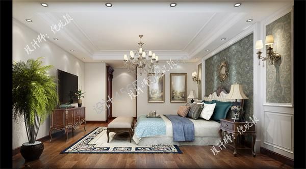155平米美式风格四居室卧室背景墙装修效果图