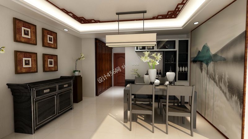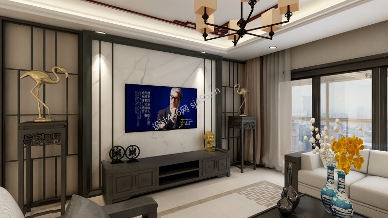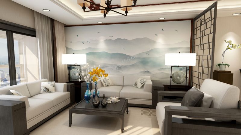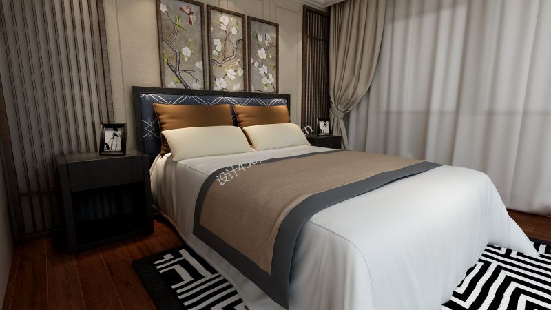 华润昆仑域15平米中式风格三居室装修案例风效果图