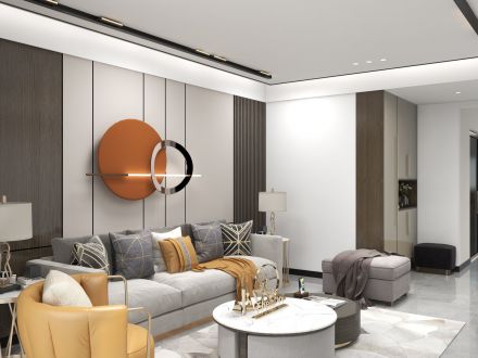 荣盛城140平米现代简约四居室装修案例风效果图
