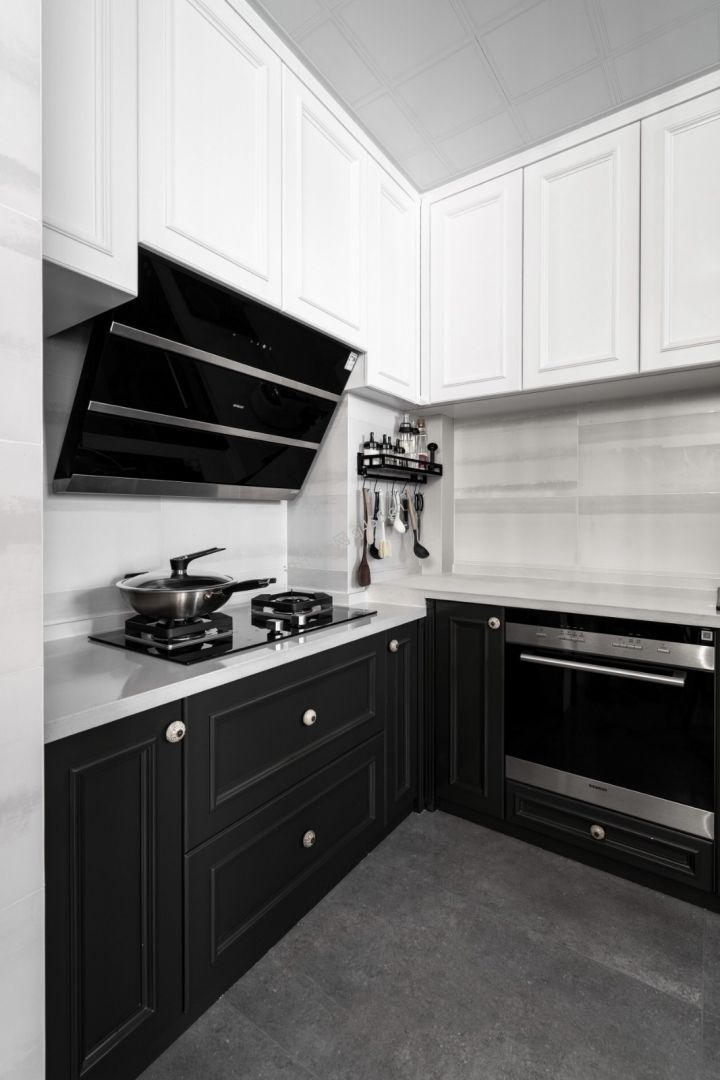 130平美式简约三居室厨房吊柜装修图片