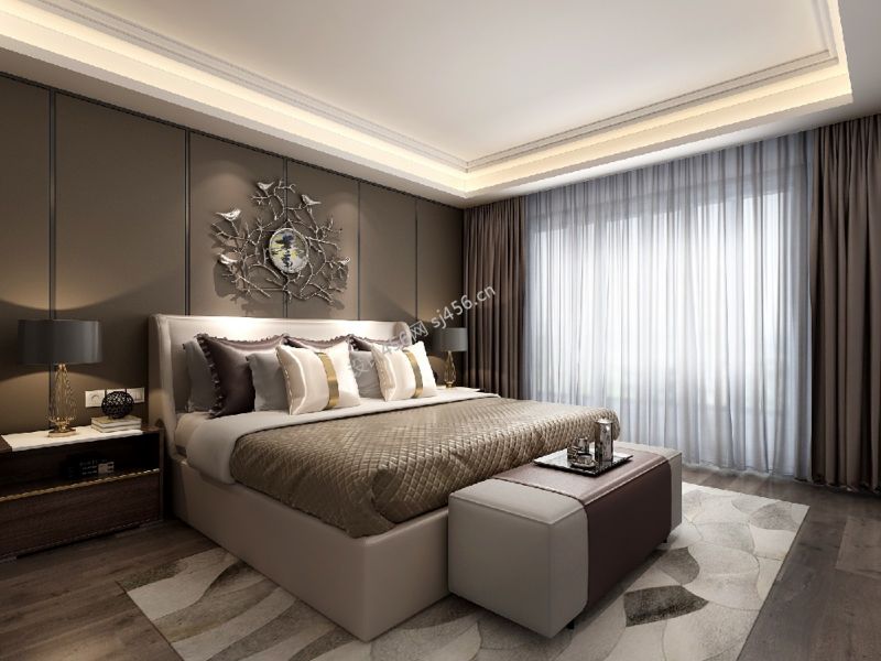 140平米现代轻奢风四居室主卧背景墙装修效果图