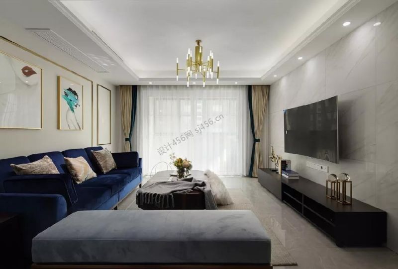 中铁香湖130平米现代轻奢风格三居室装修案例风效果图