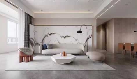 130平米现代轻奢风格三居室客厅沙发墙装修效果图