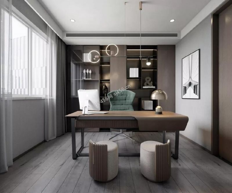 130平米现代轻奢风格三居室书房书桌装修效果图