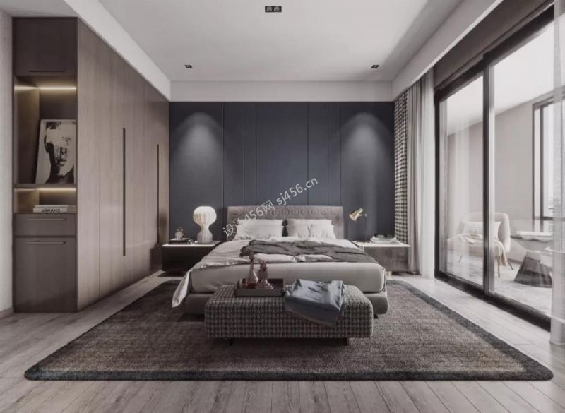 130平米现代轻奢风格三居室卧室背景墙装修效果图