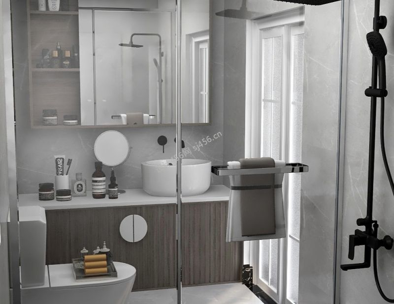 112㎡新中式风格三居室卫生间隔断装修效果图