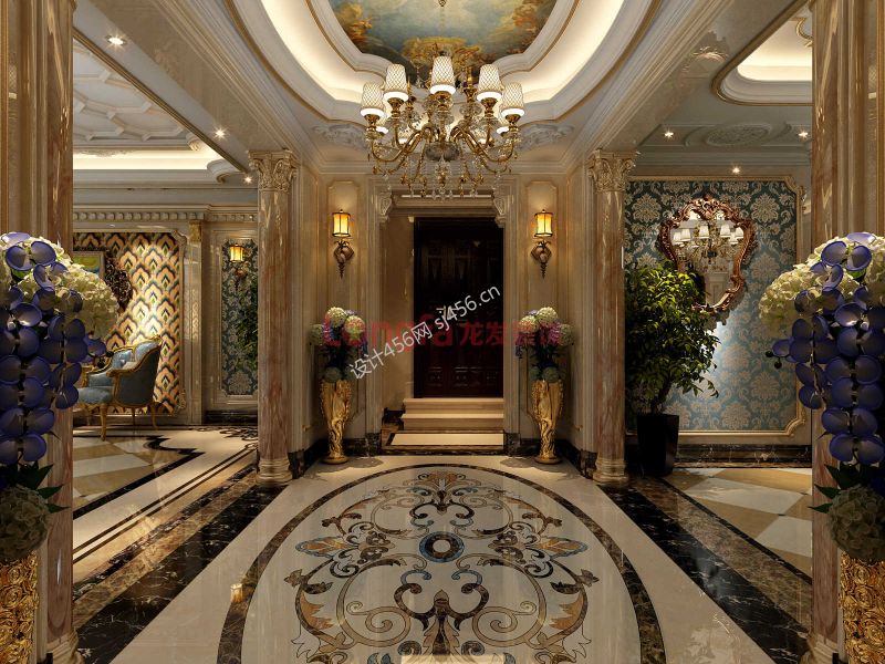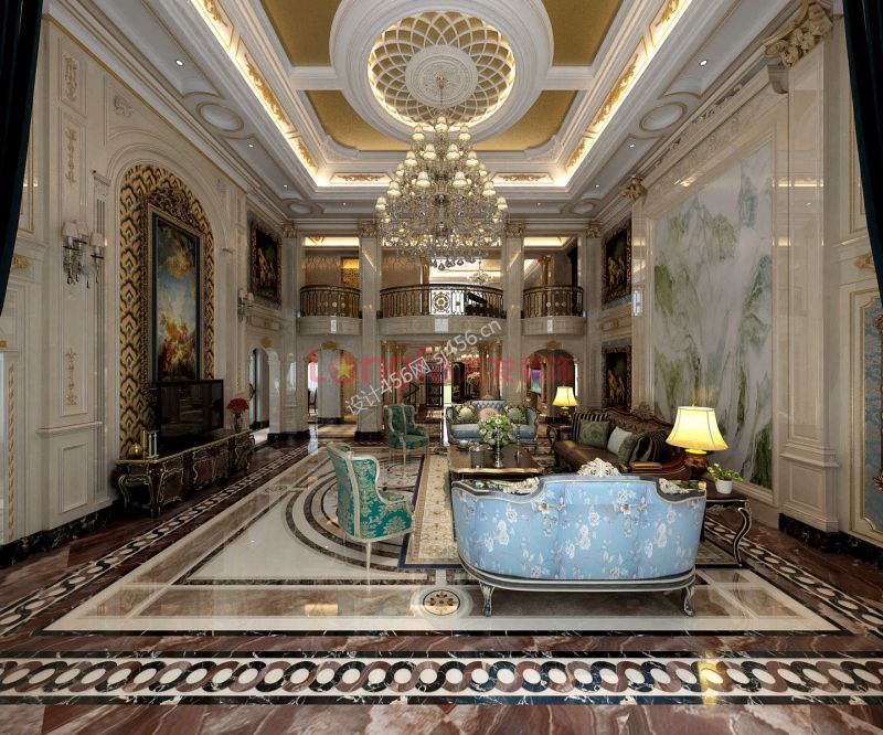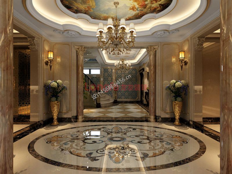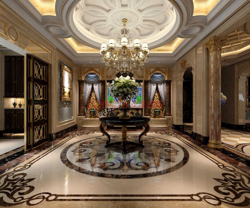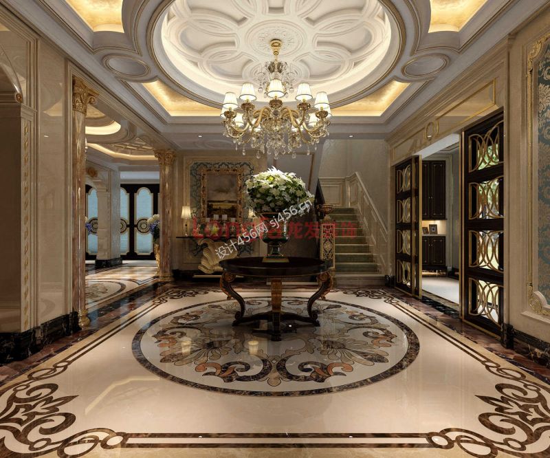 奢华欧式别墅大厅吊顶设计装修效果图片