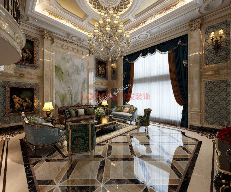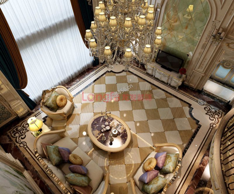 欧式奢华别墅装修效果图 2020客厅地板砖效果图