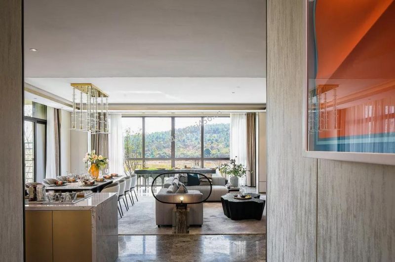 龙湖上宸原著500平别墅客厅餐厅整体装修图