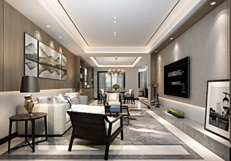 瑞赛居圣苑135平米现代轻奢风格三居室装修案例风效果图