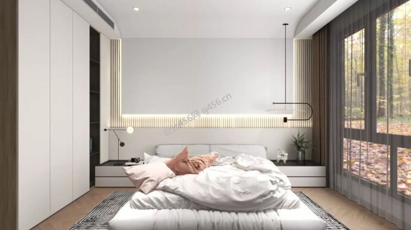 新湖国际112平米现代简约三居室装修案例风效果图