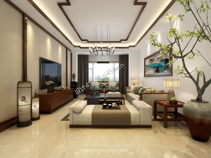 中海城瑞仕郡130平米中式风格三居装修案例风效果图