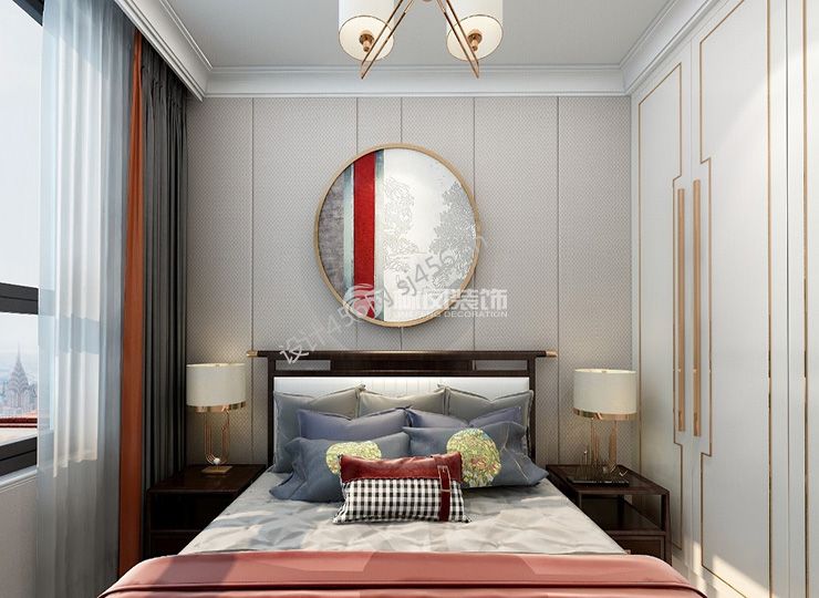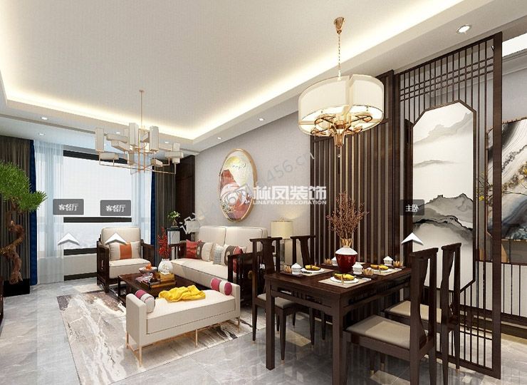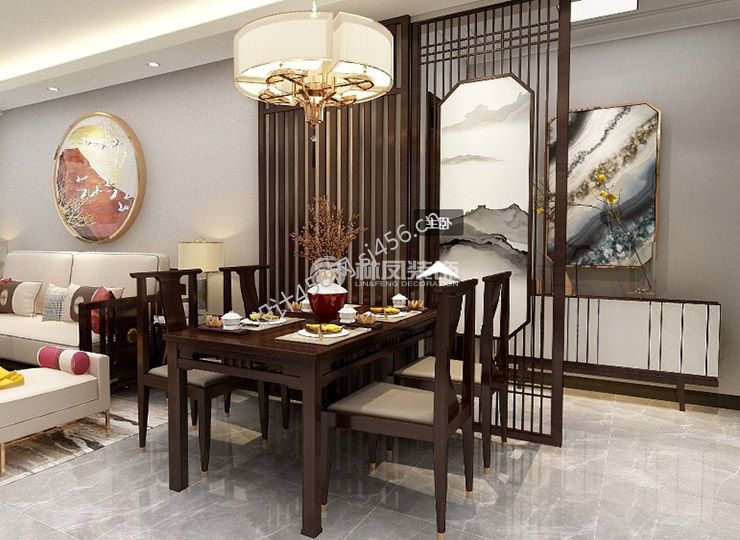 沈阳林凤装饰 金辉优步湖畔125㎡三室两卫新中式风格装修效果图