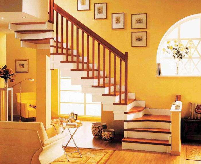 2、室内楼梯每一阶的宽度与高度。楼梯是由一阶阶组成的,基本上楼梯的每一阶的宽度与高度都是一样的,这样人在走楼梯的时候才不会一个突然的变化而措手不及,每一阶的宽度起码要适应成人的脚掌尺寸,因此,每一阶的宽度在30公分左右是较佳的时候,高则是在18公分左右是更合适的。