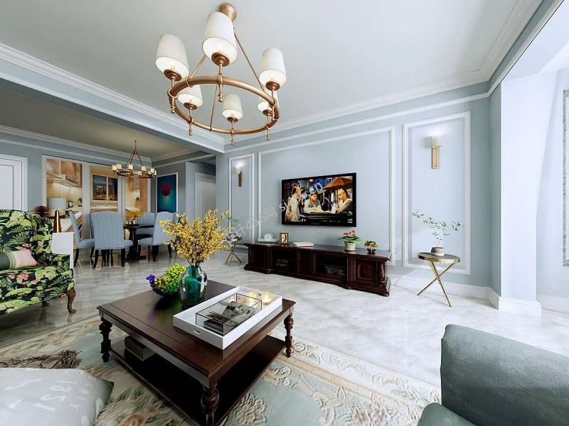 五彩阳光城120平米美式风格三居室装修案例风效果图