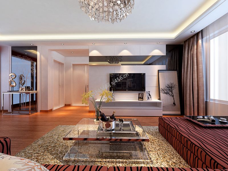五矿世家金城109平米现代简约三居室装修案例风效果图