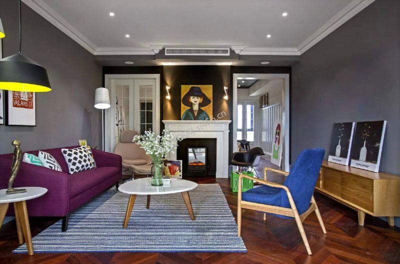2020混搭三居室客厅背景墙装修设计效果图欣赏