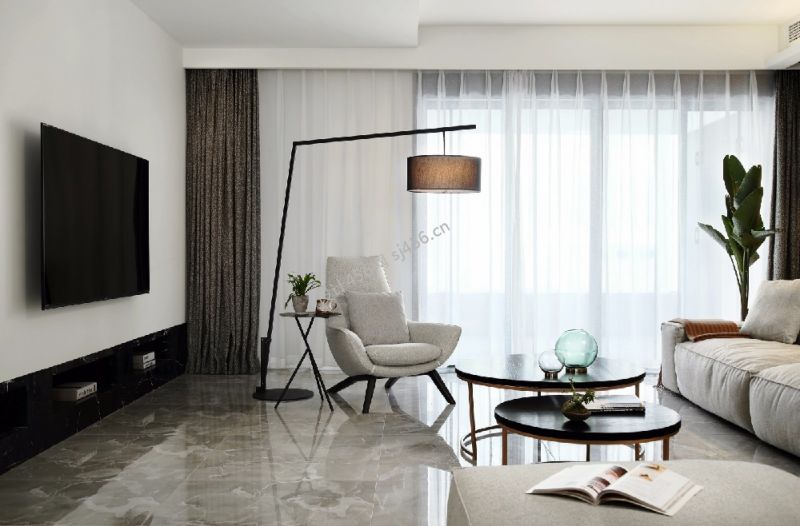保利茉莉公馆90平米现代简约三居室装修案例风效果图