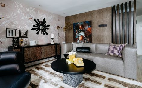 新湖明珠城100㎡现代复古混搭风二居室装修案例风效果图