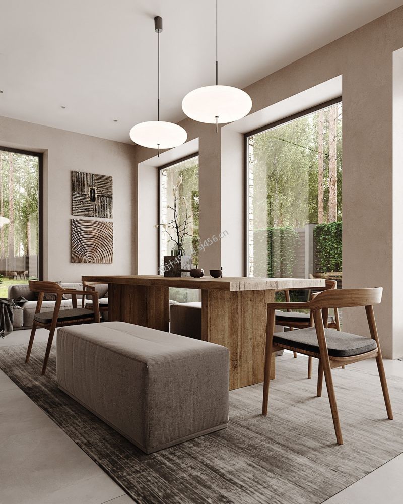 诺德阅香湖99㎡极简木质风三居室装修案例风效果图