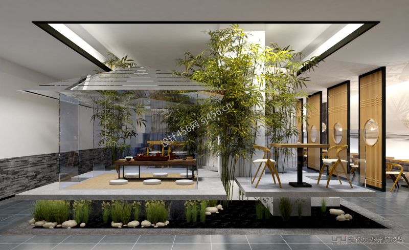 素湘阁素食餐厅230平米禅意餐厅吊顶装修设计效果图