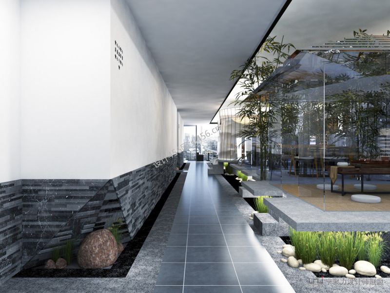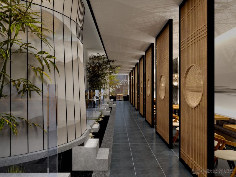 素湘阁素食餐厅230平米禅意走廊装修设计效果图