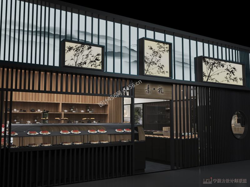 素湘阁素食餐厅230平米禅意门面装修设计效果图