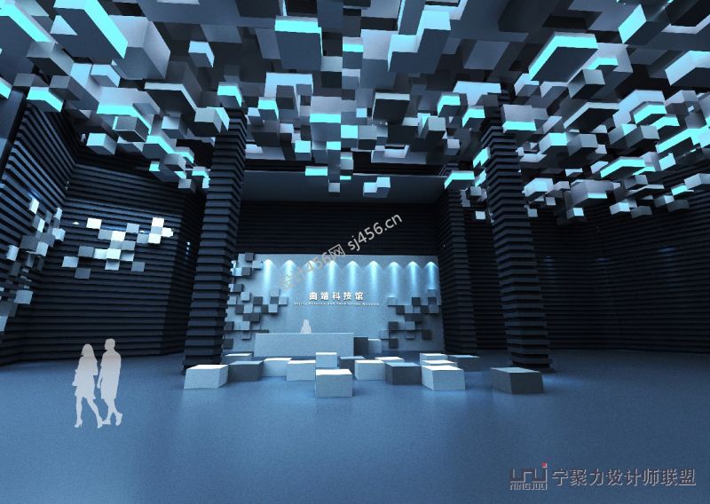 现代风格科技馆背景墙指示牌设计效果图赏析