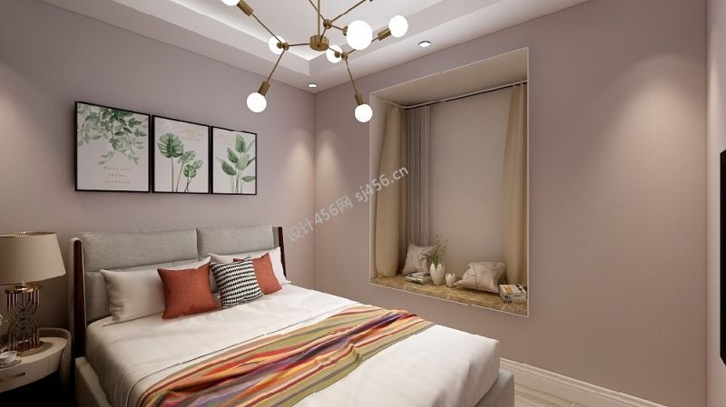 103㎡现代轻奢风三居室卧室背景墙装修效果图