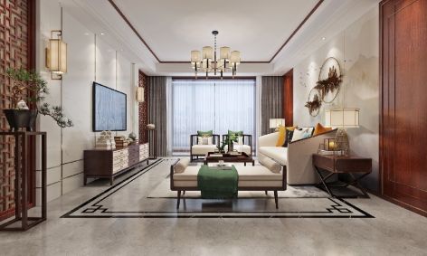 万锦红树湾108㎡现代新中式三居室装修案例风效果图