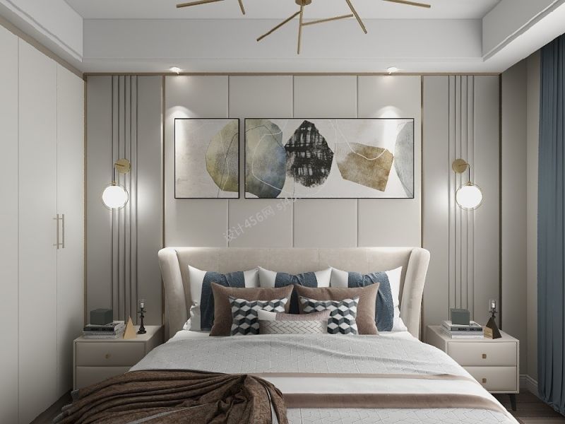 102㎡现代简约风三居室卧室背景墙装修效果图