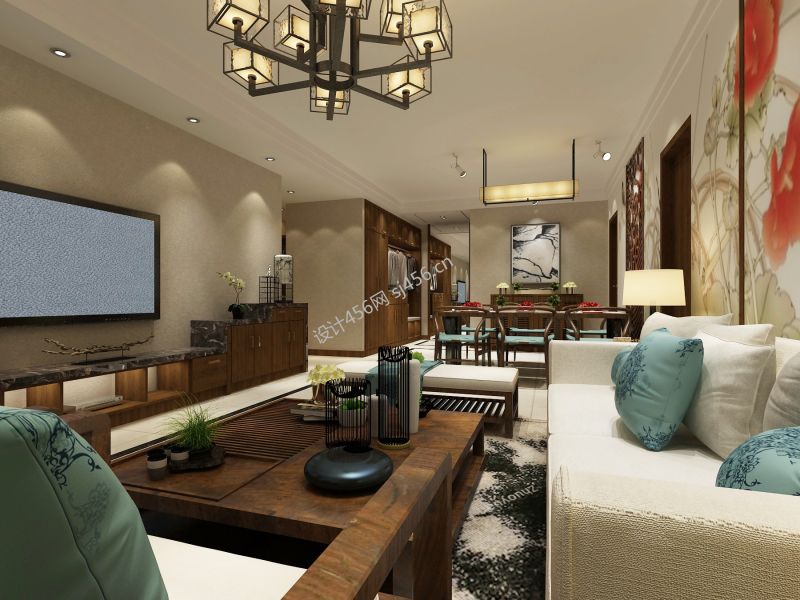 富禹依云蓝湾130平米中式风格三居室装修案例风效果图