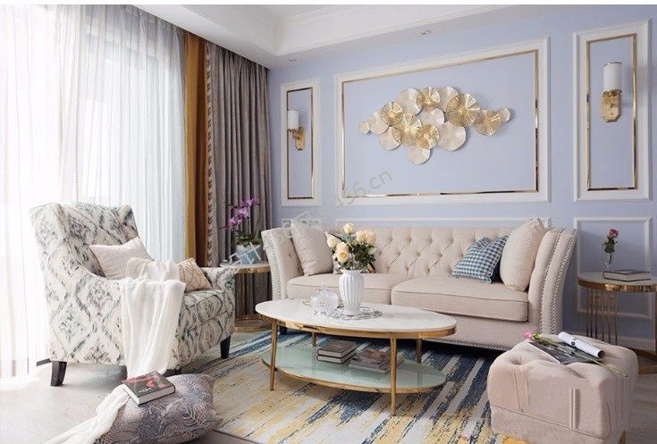 115平米美式风格三居室客厅沙发墙装修效果图
