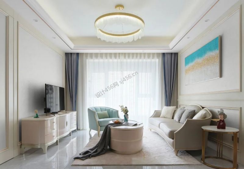 宏发国际名城111平米现代轻奢三居室装修案例风效果图