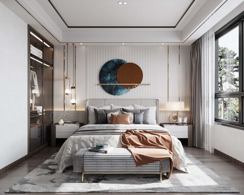 140平米现代轻奢四居室卧室背景墙装修效果图