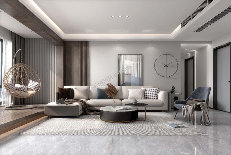 米兰颂128平米现代轻奢三居室装修案例风效果图