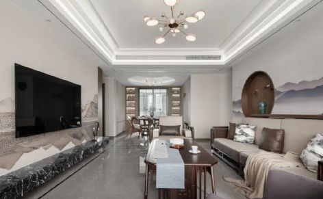 恒大半岛天境130平米新中式三居室装修案例风效果图
