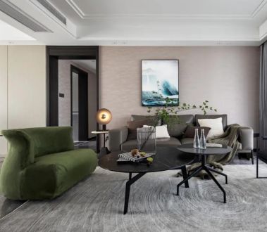 格林玫瑰湾116平米现代简约三居室装修案例风效果图