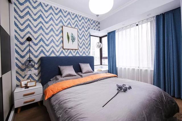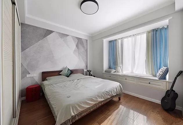 对于一些卧室空间面积不是很大的,设计师推荐你选择几何图案的壁纸,重复的几何图案可以让卧室看上去更为宽敞。