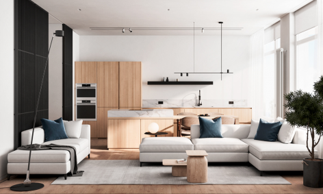 鑫丰华凯鑫城55平米现代简约一居室装修案例风效果图