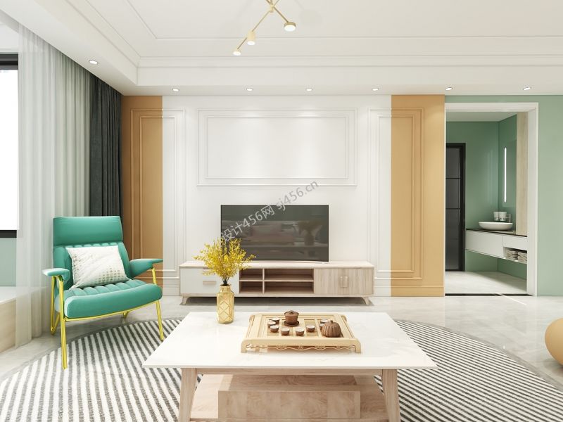 绿地新里罗斯福公馆88㎡现代风格家装效果图风效果图