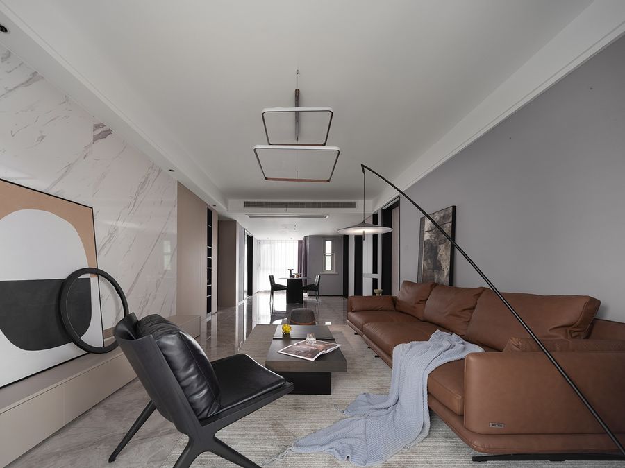 客厅可以将沙发布置成一个包围式的会客厅,具体的风格可以根据整体风格来确定,后续客厅可以作为一个简单的会客区域或者是聚会区域,非常适合家人朋友围在一起聊天或者吃饭。