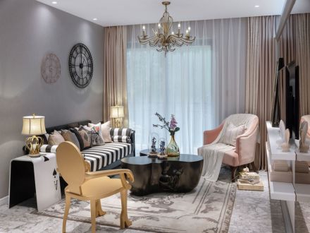 前城滨海花园86平轻奢风格二居室装修案例风效果图