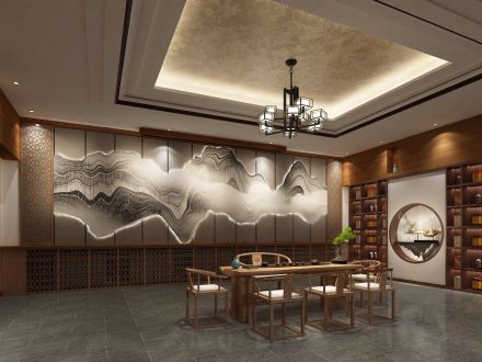 中式复古380平米餐厅装修案例风效果图