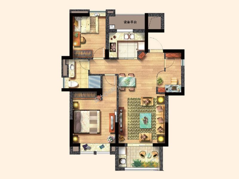 简约风76.8平米两室两厅客厅沙发装修效果图