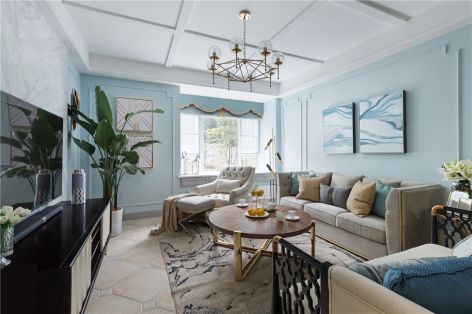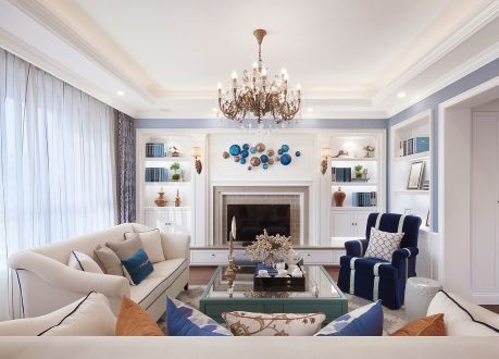 简约美式74.95平米两室两厅装修案例风效果图