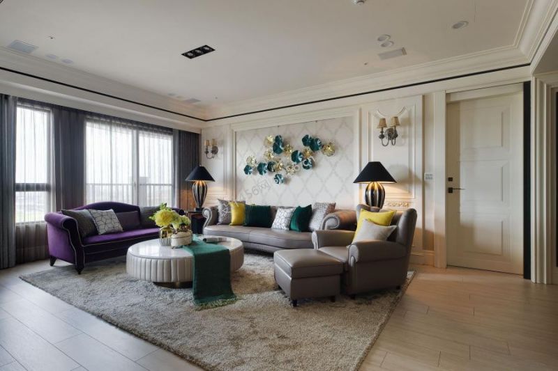 欧式风格107平米三居室客厅沙发背景墙装修图