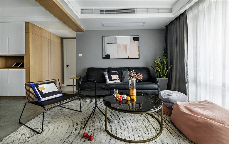 新天鹅堡现代风格113平米二居室装修效果图案例