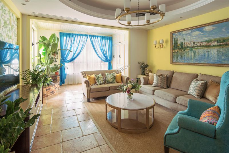 124平米田园风格客厅沙发设计效果图